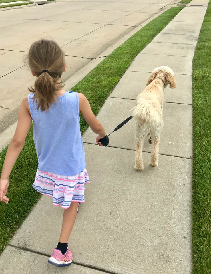 Finally when Anna got into preschool, I was able to ditch the stroller. Ruby and I would cruise through town at record pace, taking 3- and 4- mile walks as we explored different routes. When Anna got older, I would walk Ruby to her school at dismissal, hand Anna the leash, and let her walk her home.