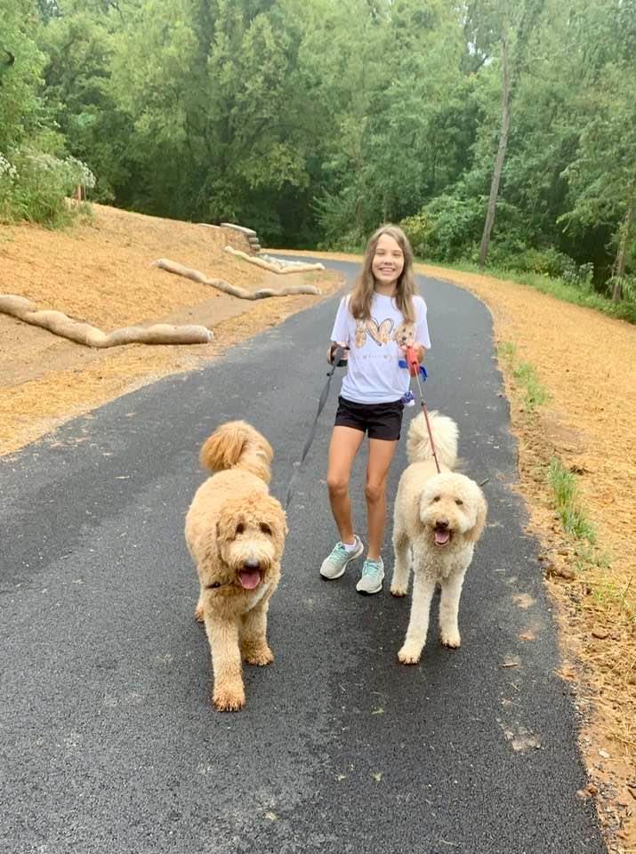 It’s something I got used to hearing on my walks for the past four years, and with good reason. I must have looked like a marionette, trying to control my two big goldendoodle puppets. One would be way up ahead trying to pull me while the other would fall behind to pee or sniff something. My arms were always stretched in different directions, and sometimes I had to twirl myself around to unravel the leashes that ended up around my waist.